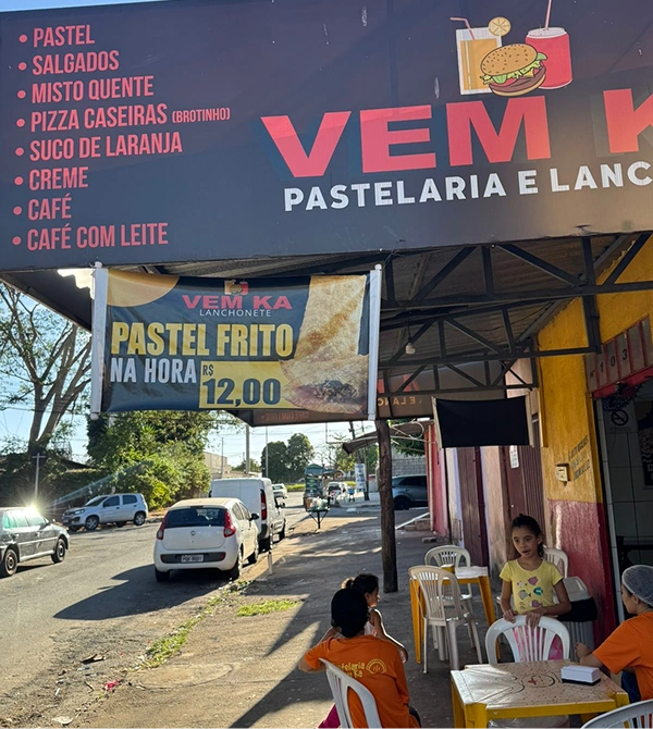 Na correria do dia a dia, a gente quer comer algo gostoso, prático e bem feito. Na Pastelaria Vem Ka, cada pastel é preparado com recheios caseiros, feitos no mesmo dia, com ingredientes selecionados. É o tipo de lanche que não decepciona: mata a fome e deixa vontade de repetir. Sem exagero, sem promessas fora da realidade. Só sabor e qualidade de verdade.